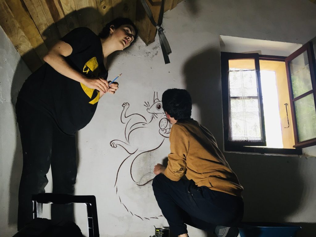 Durant 4 jours nous avons rendu un peu d’éclats à cette cabane en lui apportant des touches de beau, de chaleureux et d’utile au grès de nos envies et imaginations … notamment de belles innovations pour installer des étagères, faire entrer la lumière par la porte, … ou encore donner une place au loir sans qu’il nous dérange trop !
